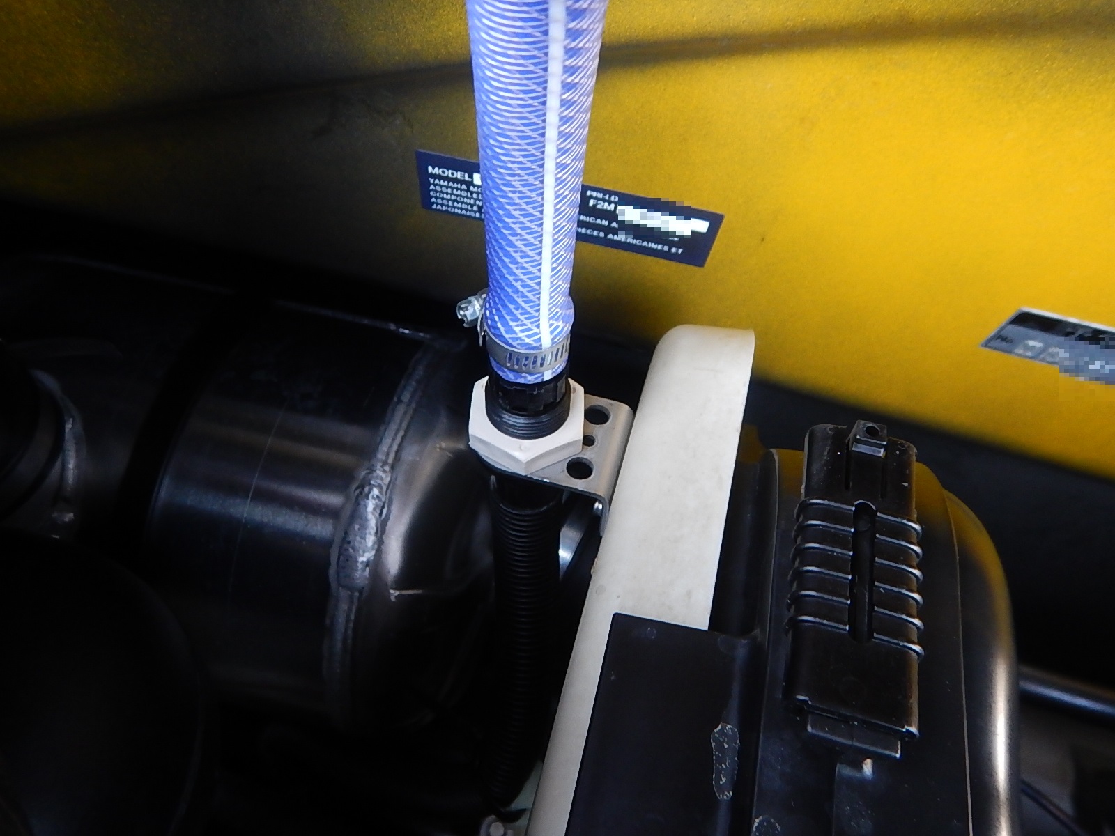 ここに水道ホースを繋ぎ水道水を通します。 この作業をしないとあっという間にオーバーヒートとなってしまい最悪焼き付きます。 特に温度差の激しい冬場は注意が必要です。