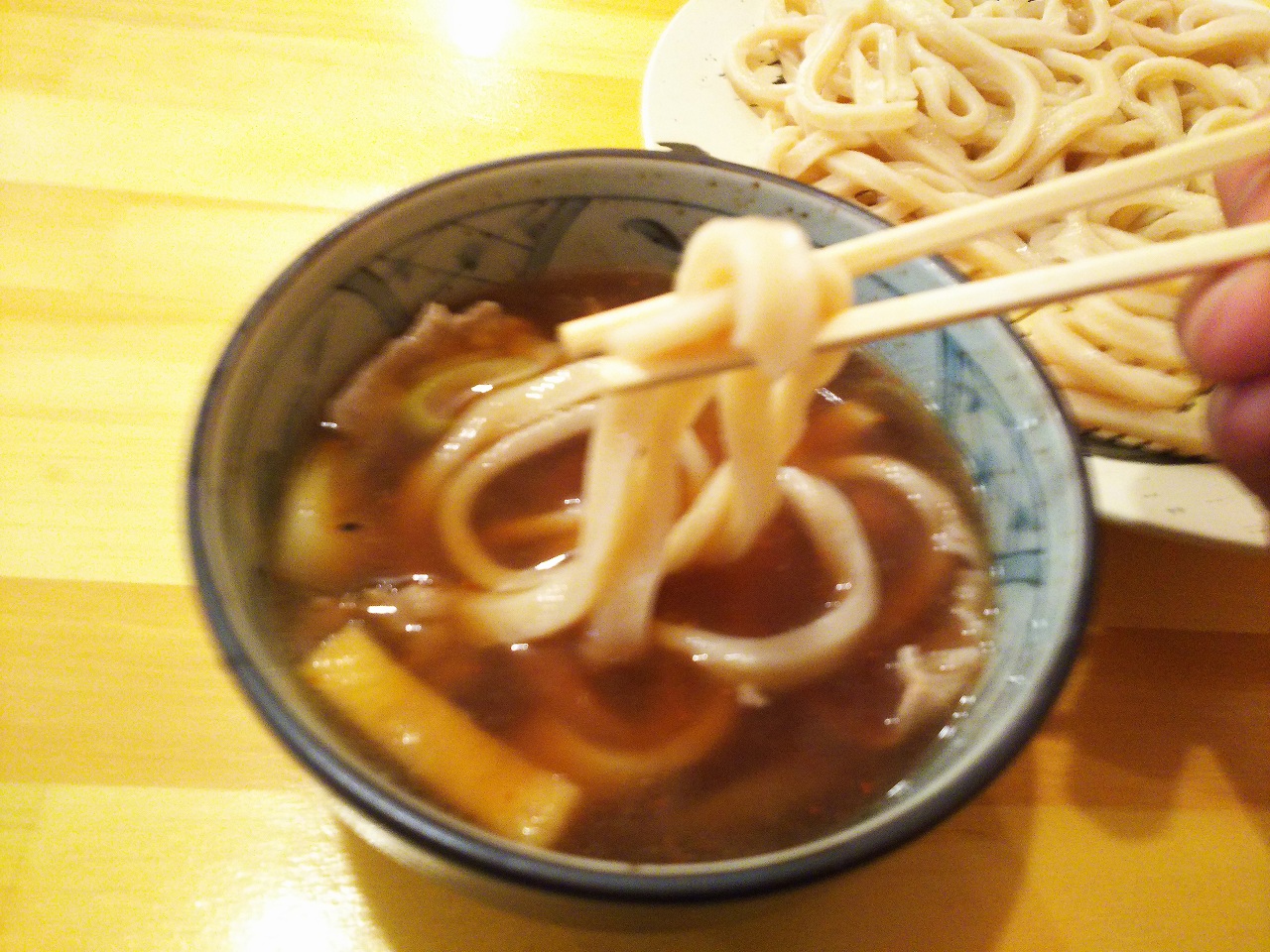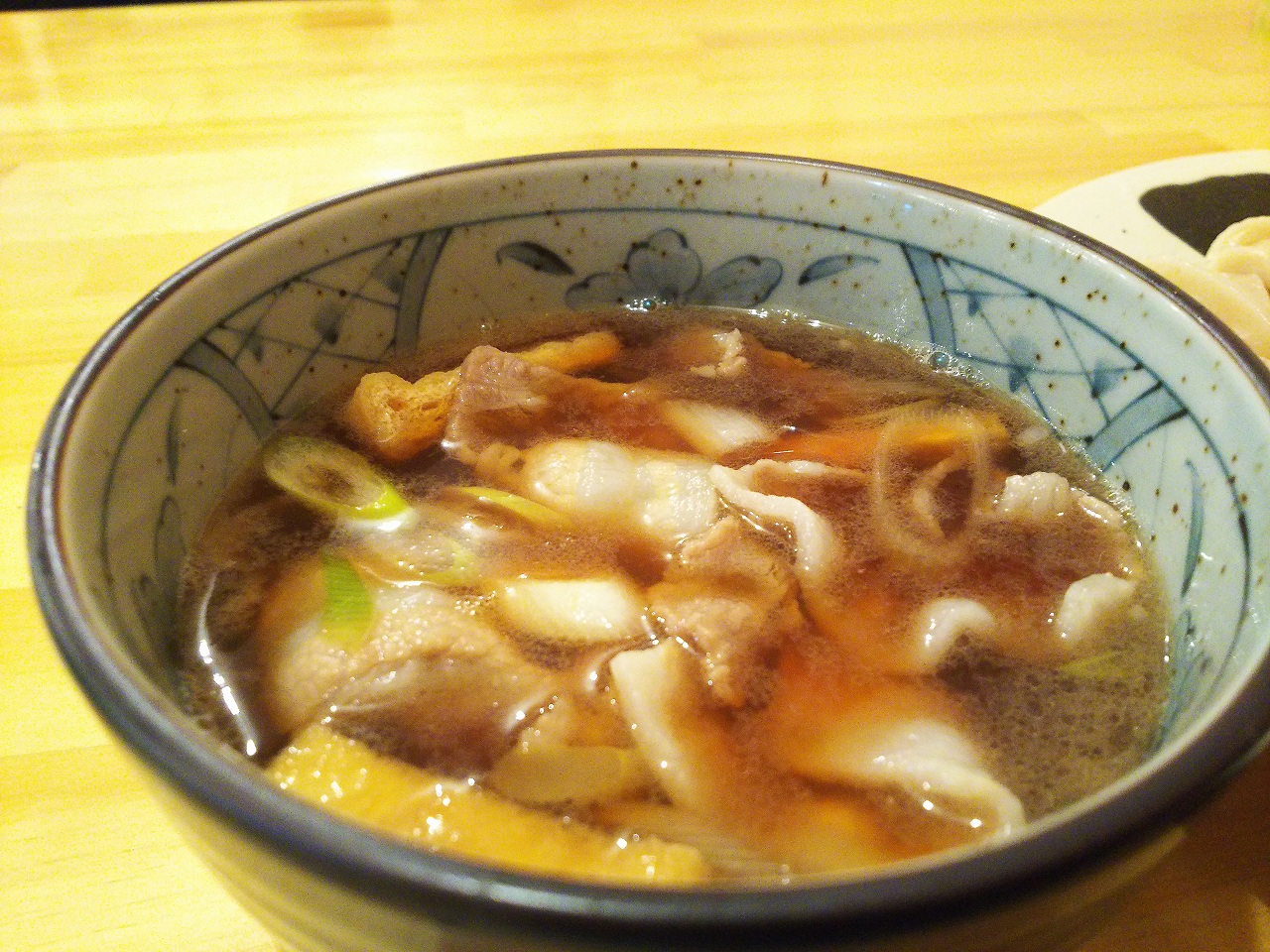 つけ汁も肉汁の出汁が出ていて、お揚げさんと食べると口の中に程よい甘みが広がります。個人的にはもう少しネギが入っているとエクセレント!!なんですが(笑)