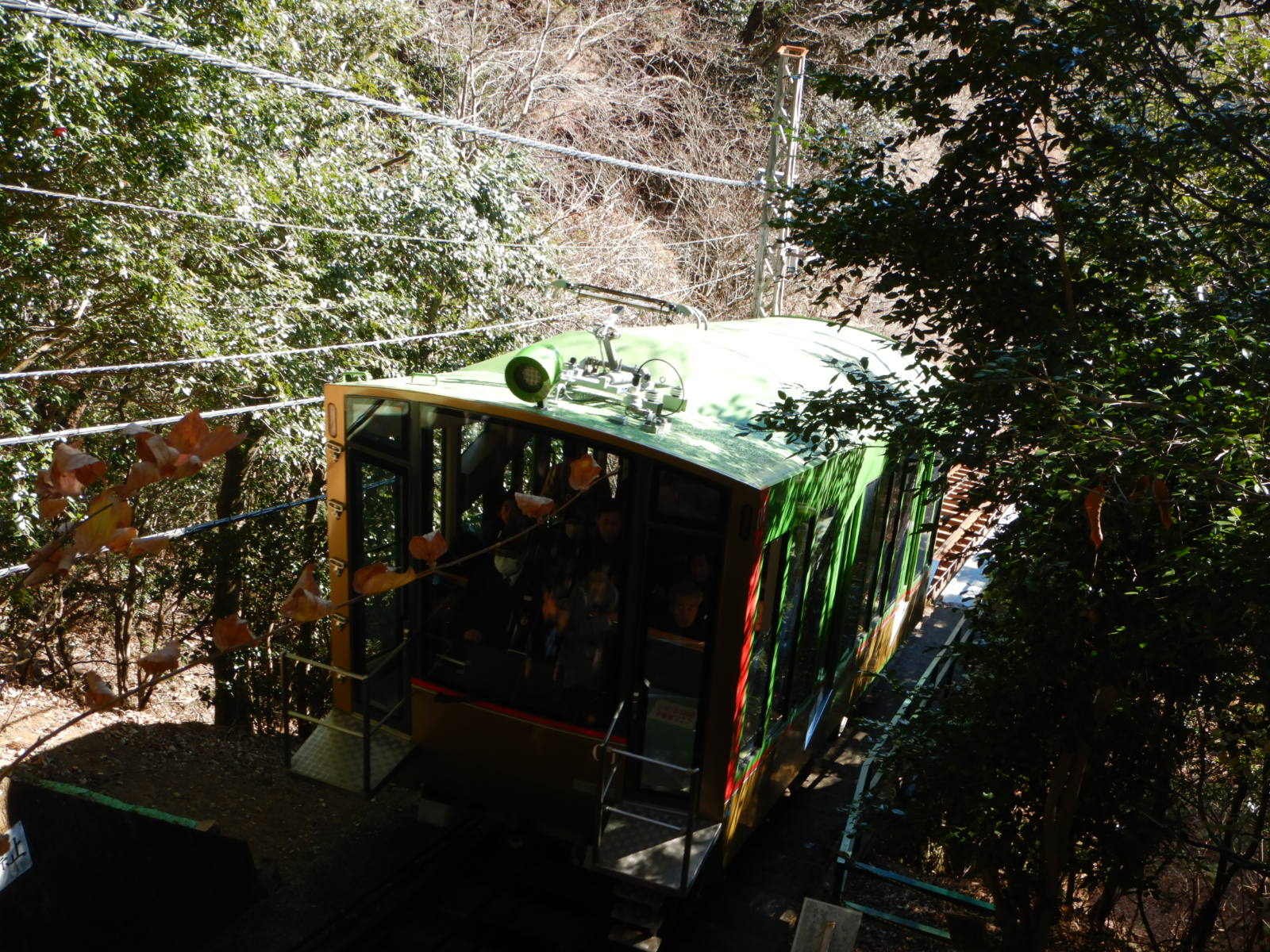 らくち~んと言いながらケーブルカーが通り過ぎて行きます。