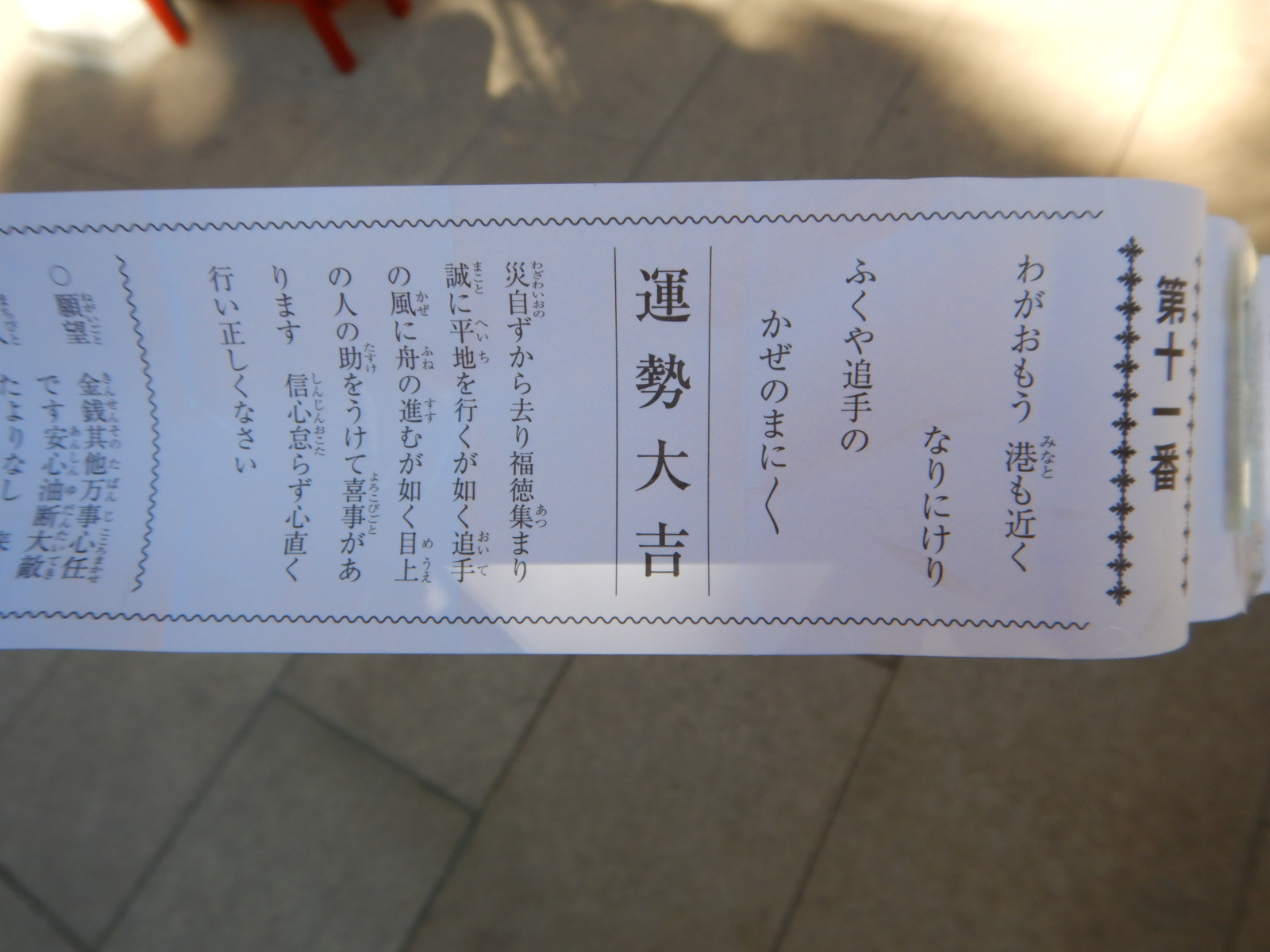 近くの神社のおみくじは吉だったから